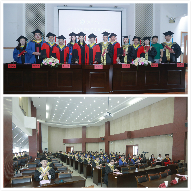 典礼结束后,学位授予仪式在学院大厅隆重举行,毕业班辅导员金钰锁、吴迪、杨兵为毕业生拨穗,院长为毕业生授予学位,颁发学位证书,并一一合影留念。