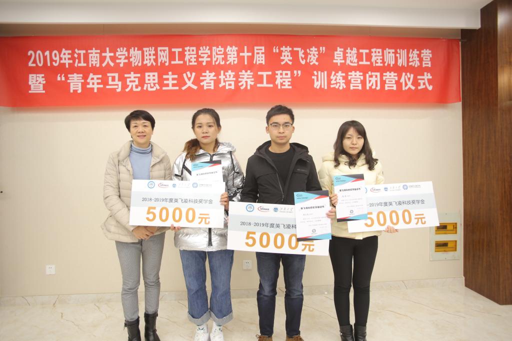 闭营仪式最后,英飞凌科技(无锡)有限公司人力资源部总监王晓东发言,她提到英飞凌和江南大学物联网工程学院长达十年的合作是一个不断传承、不断创新、不断融合的过程。校企双方的成功合作离不开学校的重视和支持,以及对人才培养创新的孜孜追求,同时她向全体训练营的营员讲到,要善于在学习中发现兴趣,通过培养自己的专业兴趣,进一步深入探索和钻研,成为一专多能的新时代人才。活动结束后,领导嘉宾和优秀营员及奖学金获得者共同合影留念,本次训练营圆满结束。