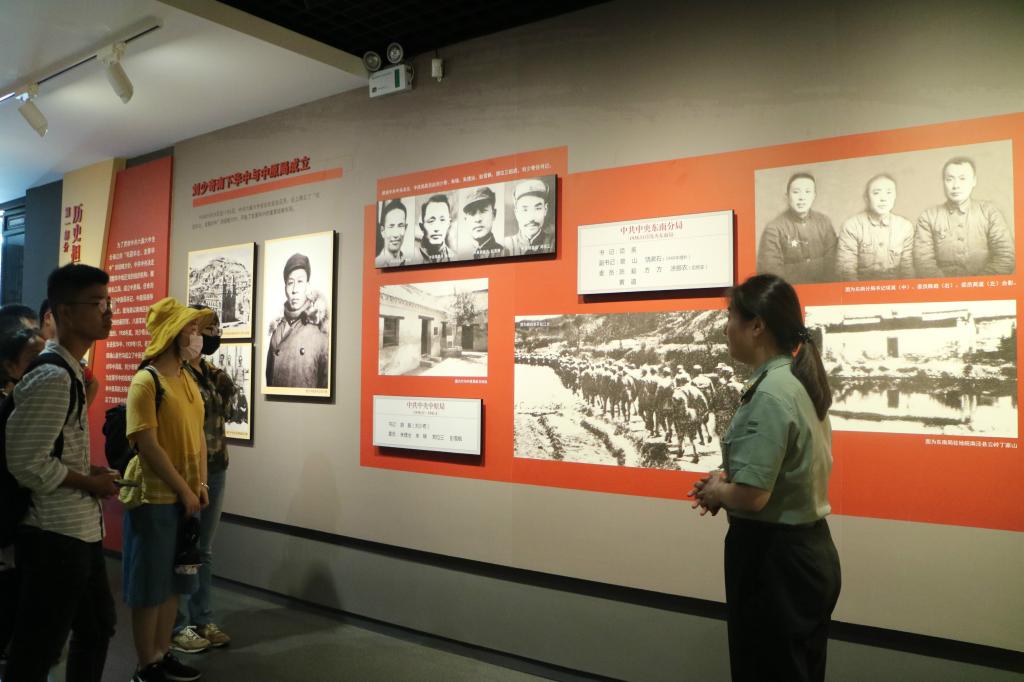 实践的第二站,队员们怀着激动的心情来到新四军纪念馆,迈步走进新四军纪念馆,迎面而来的是一个高大雄伟的新四军雕像,昂首挺胸,背着长枪,吹着号角,一副正气凛然、勇往直前的姿势。大家的敬意油然而生!走进馆内,陈毅、刘少奇、张云逸、赖传珠和邓子恢五位领导人的雕像栩栩如生地展现在大家面前,再现了一代伟人的勃勃英姿。馆内陈列着许多新四军的历史文物。每一件历史文物都见证了那段炮火纷飞的峥嵘岁月!这些历史文物也仿佛让大家回到了那血雨腥风、艰苦卓绝的年代,新四军顽强地与敌人殊死搏斗!在讲解员的讲解下,我们了解了新四军坚忍不拔、奋力抗战的光辉历史,更加深刻地感受到了新四军用鲜血铸就的“铁军精神”。走出纪念馆,心情有些沉重!想到新四军们在枪林弹雨里不顾生命危险奋力向前,我们意识到今天的一切是多么的来之不易!