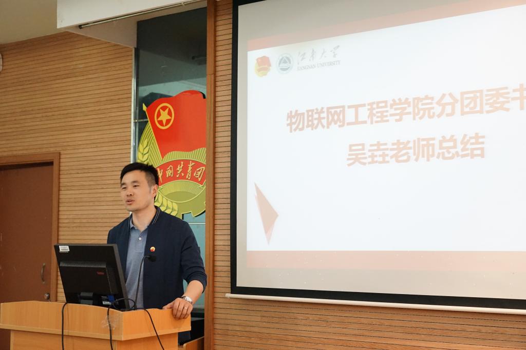 最后由吴垚老师总结发言,他对各位参加答辩的团支书的精彩表现,及2018级团支部的各项团建工作给予了高度的赞扬,对本次特称团支部争创活动的顺利开展表示肯定。他提出开展特称团支部争创活动是物联网工程学院分团委的一项重要的传统活动,全院共有6个特称团支部,每个年级有3个,特称团支部争创活动的意义在于,以特称精神鼓舞团支部积极开展团建活动,建设好团支部,开展好团日活动,以青春之我、奋斗之我的精神面貌,使团支部换发活动,真正使团支部发挥引领凝聚青年、组织动员青年、联系服务青年的基层战斗堡垒作用,使广大团员在团支部中孕育青春心向党、建功新时代的信心、恒心和决心。使特称精神在团支部中发挥激励进取的重要作用。