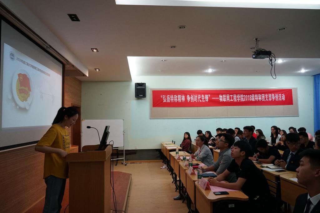 5月15日晚,我院2018级特称团支部争创活动现场答辩在学院B109隆重举行,来自2018级各专业的8名团支部书记代表各团支部作了争创特称团支部的答辩。本次活动由物联网工程学院分团委主办,学生会团务中心承办,分团委书记吴垚、2018级辅导员王志顺、侯玉莹担任本次争创答辩的评委老师。2018级所有团支部书记、副书记、参加争创团支部的团建指导员以及特称团支部书记共同参加了本次活动。