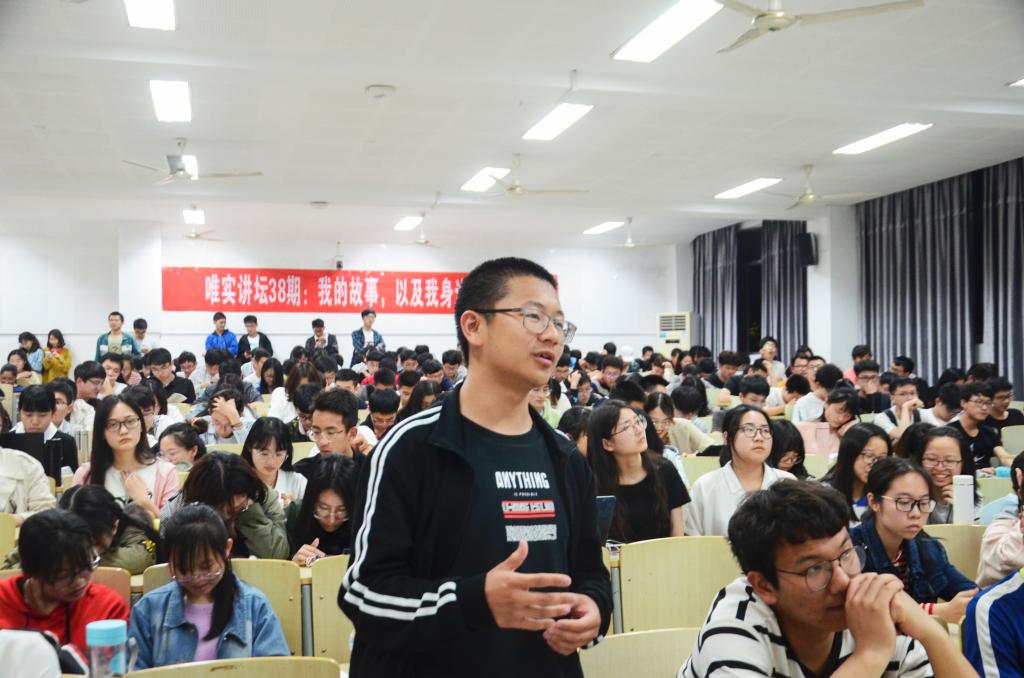 最后,洪云峰将话题带回到在场的学弟学妹的职业生涯规划上,他希望大家从长期规划和目标反观现在进行选择;在学习方面他认为培养学科思维比掌握知识点更重要,同时,他也呼吁大家在本科阶段好好学习,为将来到更好的平台夯实基础,争取厚积薄发。在最后的提问环节中,同学们踊跃发言,现场气氛十分活跃,洪云峰一一耐心、真诚地解答,并给予实用化建议。在同学们经久不息的掌声中,本次活动圆满结束!
