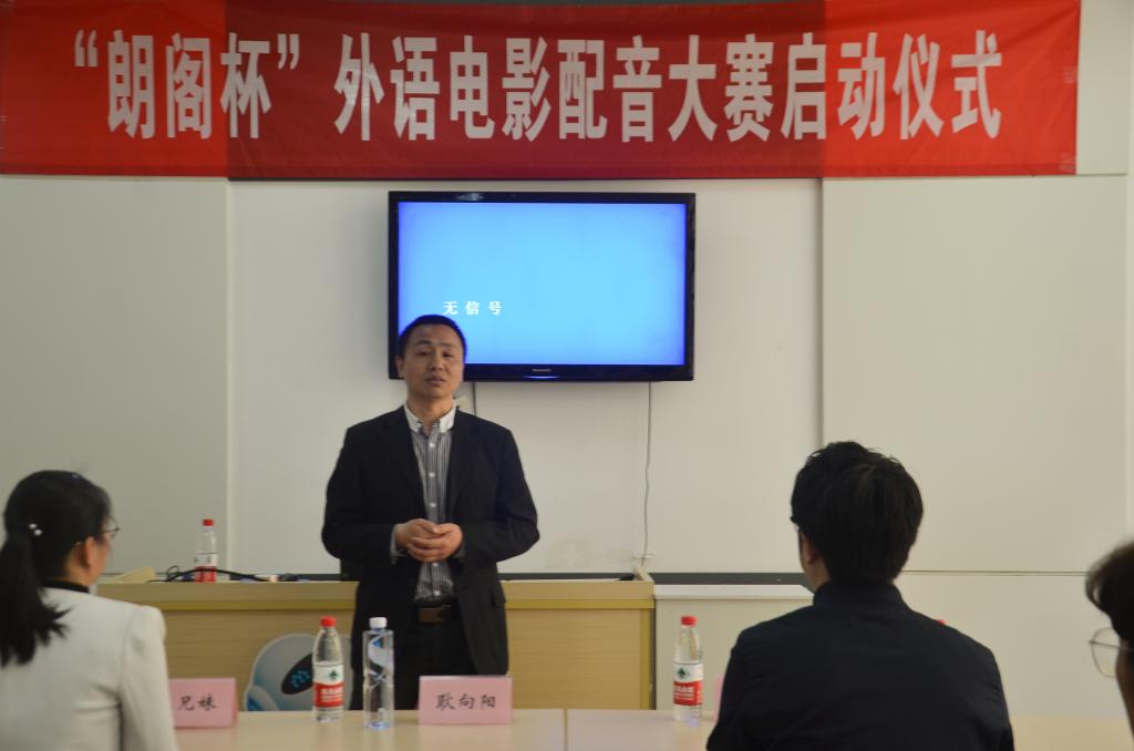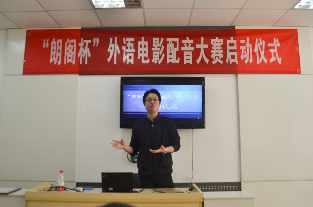 仪式开始,吴哲旻进行致辞。他提到,物联网作为前沿尖端产业,需要相关人才走向世界,与国际接轨,因此英语能力显得尤为重要。他希望同学们能够通过这次活动,培养学习英语的兴趣,拓宽同学们的国际视野。最后,他衷心祝愿首次“朗阁杯”外语电影配音大赛能够圆满成功。