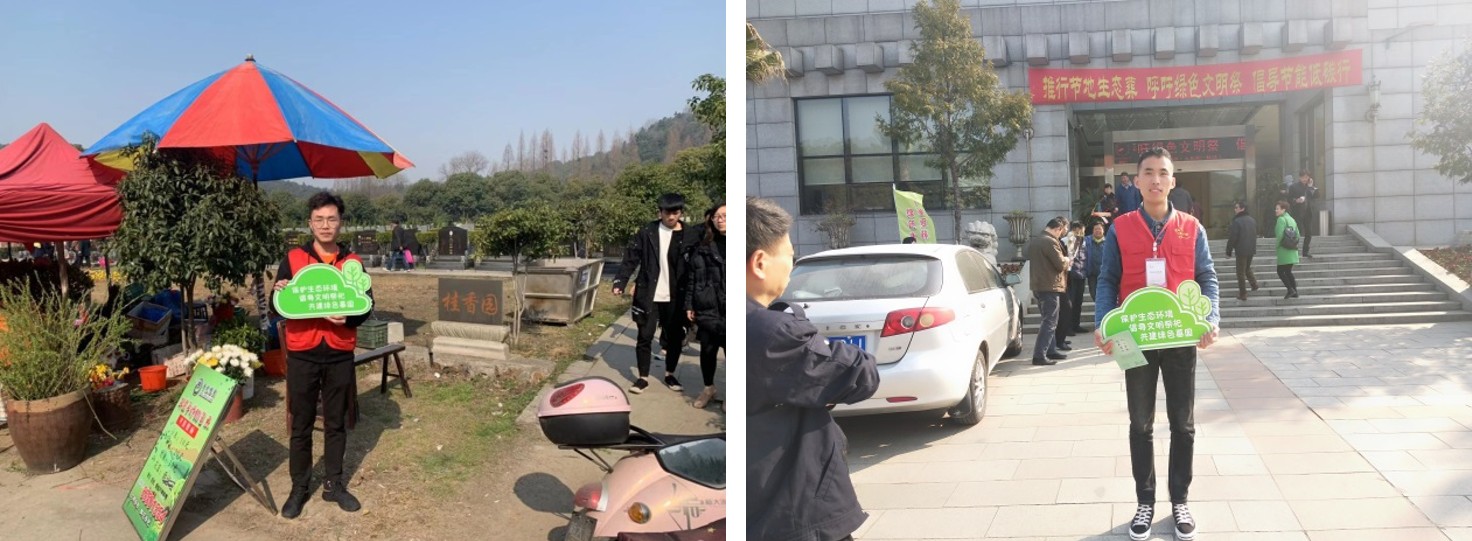 本次活动由滨湖区爱分享公益互助中心主办,以维护绿色低碳、安全有序的祭祀环境为主要内容,8位学生党员们在公墓内各站点举标语,宣传文明扫墓、引导祭祀人群、维持墓园环境与秩序。在上午的志愿服务期间,所有学生党员都十分积极主动帮助他人,这也受到公墓负责方的一致好评。