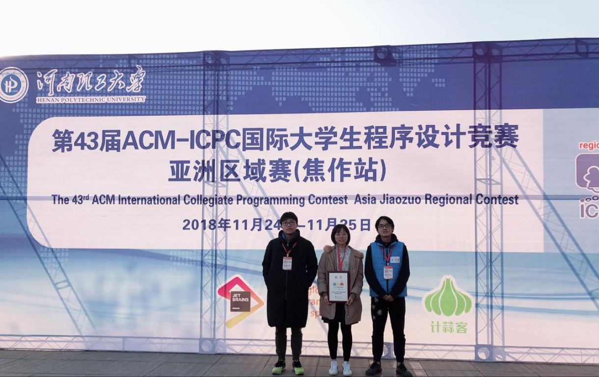 近日,2018年ACM-ICPC亚洲区域赛在河南省焦作市举行,来自国内外186所高校、3所中学和1家企业的298支队伍共计894名学生同场竞技。我校ACM俱乐部骨干队员、物联网工程学院计算机科学与技术专业陈朝潮、王烟波、朱雨南同学组成的“朝烟暮雨”队(指导教师:蒋敏)永夺银奖。继几周前的“晨破天晓”队获得银奖打破历史记录后,再次取得银奖,向全国高校展示出了江南大学计算机系的实力。