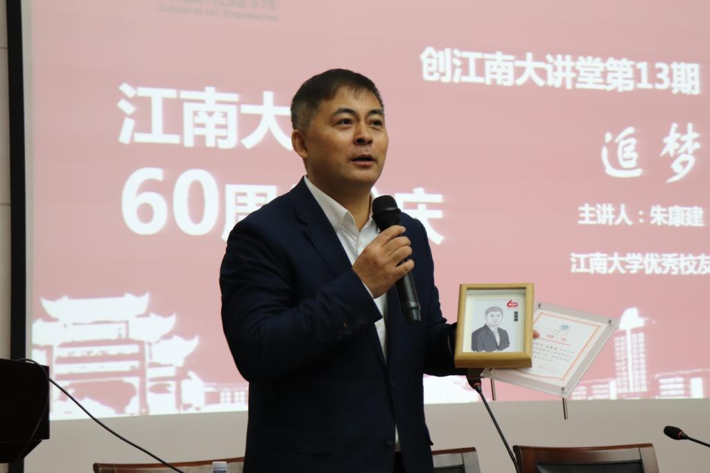 11月17日,创江南大讲堂第13期在学院D328成功举办。本次讲座的主题为“追梦”,邀请了江南大学知名校友朱康建先生作为嘉宾主讲。物联网工程学院院长谢林柏,物联网工程学院党委副书记、副院长耿向阳,及师生代表260余人参加本次讲座。