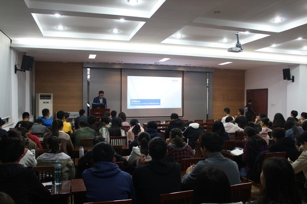 活动伊始,主持人简要介绍了吴腾飞老师的专业领域,以及本次讲坛的主要内容后,吴腾飞老师的精彩分享正式开始。吴腾飞老师先为在座同学介绍了制造业的过去、现在及发展趋势。他讲道:制造业水平直接体现了一个国家的生产力水平,是区别发展中国家和发达国家的重要因素。近年来中国制造业飞速发展,在未来的几十年中若确保发展速度不低于过去十年,就有全面赶超日本的可能。在讲坛的第二部分,吴腾飞老师带领同学们深入了解了工业通信在不同发展阶段使用的技术,包括:电气自动化技术、机电一体化技术、工业机器人技术、生产过程自动化技术、工业网络技术等,让工业通信这个比较宏大的概念在同学们的脑海中渐渐清晰。吴腾飞老师结合多年的工作和研究经验,剖析了工业通信的优缺点,明确地指出了优势在于运用范围广,通讯速率高,资源共享强,然而在速率方面瓶颈现象越发显现,即未来可能很难再次提高通讯的速率。本次讲座不仅丰富了同学们的知识,还间接为同学们未来的发展指明了方向。