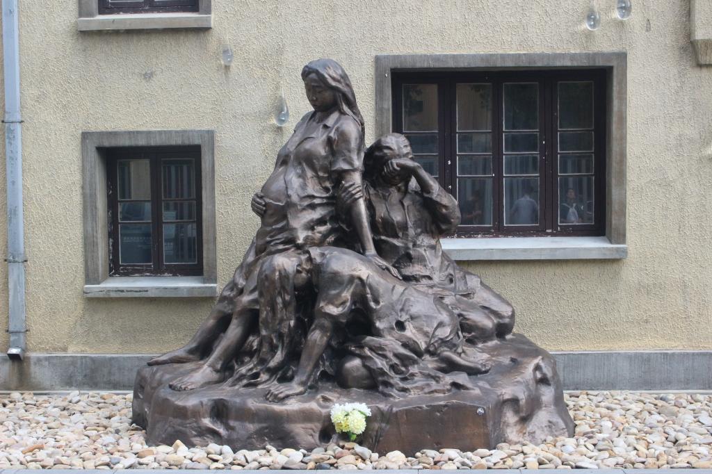 在团支部书记乌琦同学的带领下,微电子1701团支部同学从A区开始参观,通过馆内陈列的各地慰安所历史遗留物品,学术资料以及采访幸存慰安妇的影像资料,同学们怀着沉重的心情深刻的感知到日本侵略军在战争期间对于中国妇女以及其他国家妇女的粗暴行径,此类行为在令人愤怒的同时更令人悲痛。在后续参观中,陈列馆中“哭泣妇女”的雕塑以及印满幸存慰安妇手掌印的墙面使得在场同学心情更加沉重。