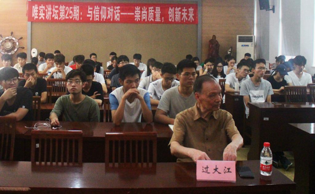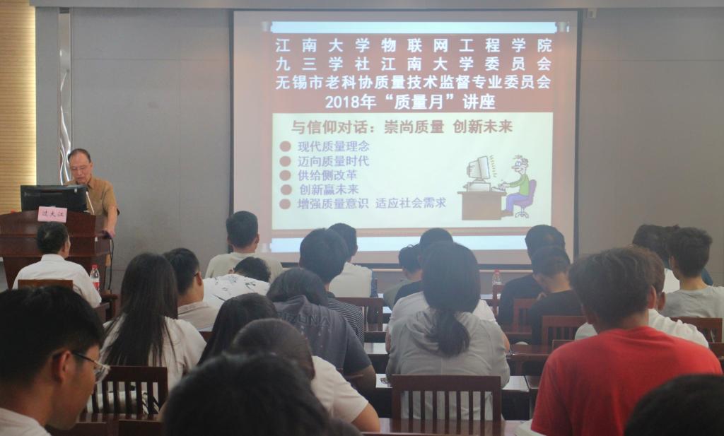 2018年9月19日下午,九三学社江南大学委员会、无锡市老科协质量技术监督专业委员会与江南大学物联网工程学院关工委联合举办主题为“与信仰对话——崇尚质量创新未来”的讲座。讲座在物联网工程学院B310进行。本次讲座特邀九三学社学员、市老科协质监专委会科普委员过大江教授主讲,物联网工程学院党委副书记、副院长耿向阳,院工会主席于力革,17级辅导员李灿以及17级瞿秋白特称团支部、王选特称团支部参加了此次讲座。讲座由于力革老师主持。