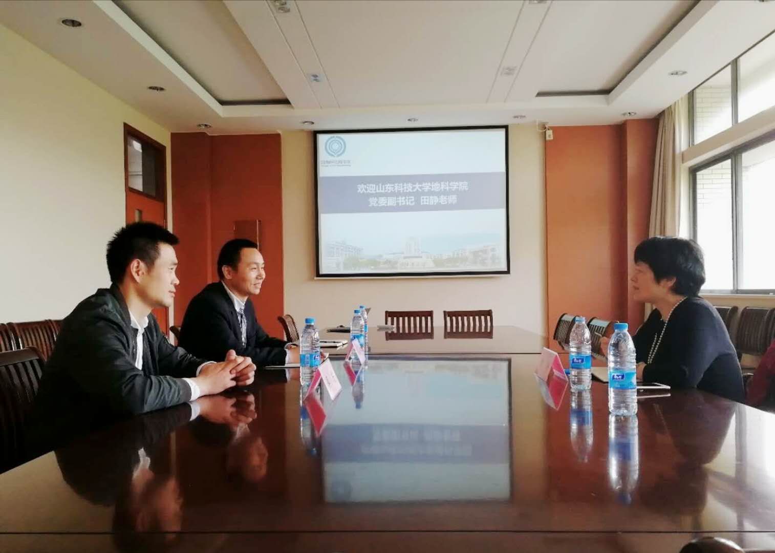 耿向阳老师代表学院对田静书记一行的到来表示热烈欢迎。他简要介绍了学校的发展历史,着重从学院发展沿革、办学格局、专业特色、学生工作、人才培养、学工队伍、对外交流、班子建设等8个方面详细介绍了学院的情况,希望两校能够加强交流,相互学习、相互促进、共同发展。田静书记感谢物联网工程学院的热情招待,她简要地介绍了地科学院的相关工作,着重介绍了山东科技大学实施“大学习、大调研、大改进”工作的背景,希望能通过此次交流两校能进一步加强沟通、互相借鉴,以促进双方相关工作的进一步发展。交谈中双方就思政工作、学科竞赛、创新创业、队伍建设、学风塑造等领域的特色举措进行了深入交流。