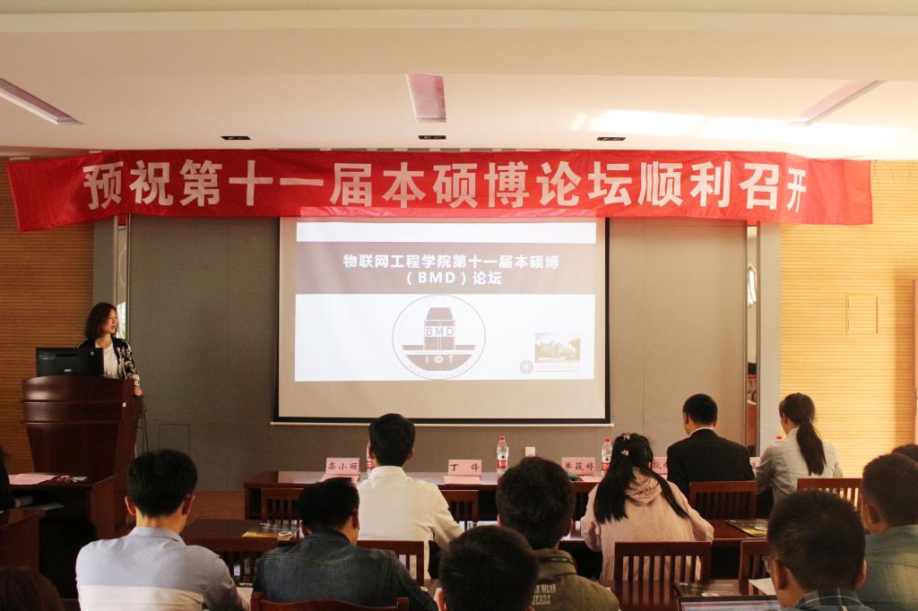 在开幕式进行之前,会场外开展了以“恪守学术道德,维护学术尊严”为主题的横幅签字活动,以此充分调动大家参与活动的积极性。开幕式上,主持人首先介绍了受邀前来参加本次本硕博论坛的嘉宾并对他们的到来表示感谢。随后由单筱婷老师致开幕辞,单老师肯定了物联网工程学院的学生在历届本硕博论坛中所取得的成绩,鼓励物联学子再接再厉。学院副院长栾小丽老师在致辞中举例说明了历届本硕博论坛在促进学生发展方面发挥的重要的作用,对本届论坛寄予深切的厚望。研究生代表岳慧慧同学讲述了作为一名学生的权利和义务,强调了学生的权利与义务的异同之处,希望物联学子能够在享受权利的同时积极认真地履行义务。随后,学生代表宣读了学术道德倡议,并向与会成员分享了本次论坛的LOGO的意义所在。