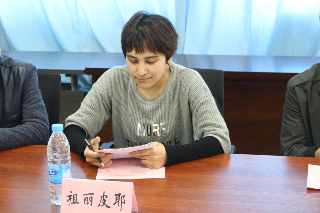 2014级学生阿卜杜凯尤木围绕“大四前应具备哪些条件、为什么要具备这些条件、怎样才能够达到这些条件”三个问题,详细阐述了自己四年的大学生活,用成功考取国家电网的实例,从前期准备、复习备考、面试技巧、点滴感悟分享了考取国家电网的心路历程,告诫学弟学妹要珍惜当下时光,全力以赴心中的梦想!2017级学生如斯台木表达了自己内心深处的感动:2017年11月突发阑尾炎,就在自己无助的时候,学院及时关心,从帮助就医到联系父母到帮垫医药费;同学及时伸出援手,轮班陪床照看……谈到这些点滴感动,如斯台木动情地说到:“我真诚地感谢国家好政策让我有机会到江南大学读书,有机会遇到这么好的老师、这么好的同学,来到江大8个月的时间,没有丝毫陌生,带给我更多的是感动,没有丝毫想家,因为这,就是我的家。”2017级学生吐尔逊阿依分享了自己参加学生社团的经历,讲述了自己是怎样从“不敢说、不敢做”到“敢想敢说敢做”的华丽蜕变,如今的她活跃在学校各大文艺的舞台上,活跃在青年志愿者的奉献里。随后来自维吾尔族、哈萨克族、回族的学生一一发言,就自己大学的感想、疑惑进行充分交流,三位老师不时与他们互动,给出建议,提出方法。