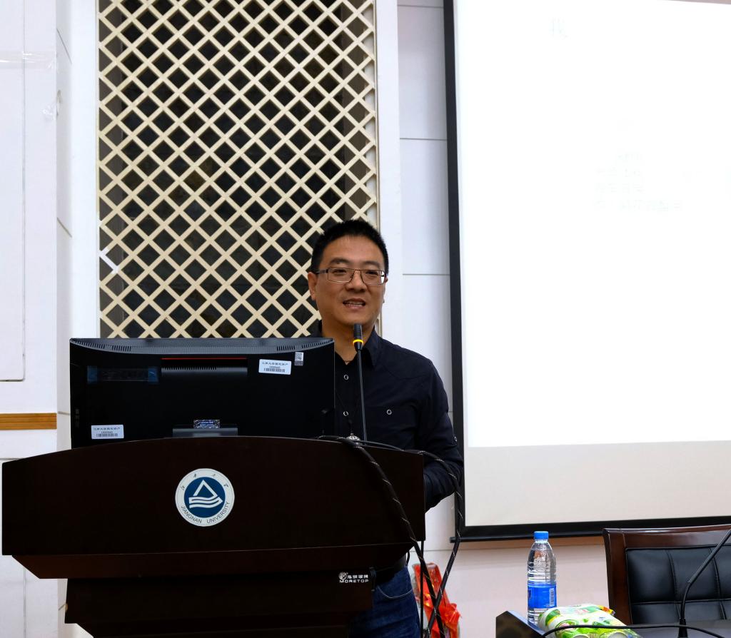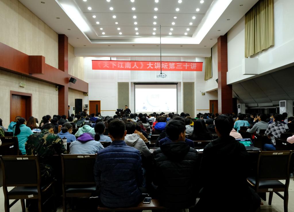 2017年11月23日晚,江南大学深圳校友会秘书长张博在物联网工程学院D328开展《天下江南人》大讲坛第三十讲,物联网工程学院副党委副书记耿向阳主持了本次讲座。讲座以“实战的幸福修炼”为主题,向同学们阐释了大学生活应当怎样度过,毕业后又需要怎样融入社会。