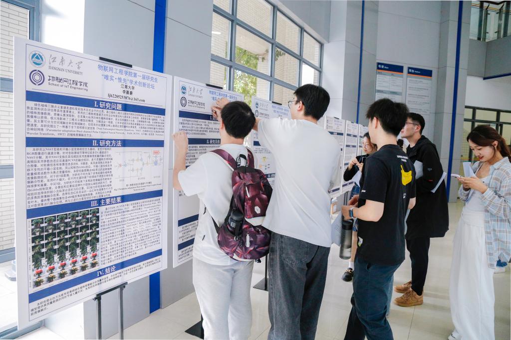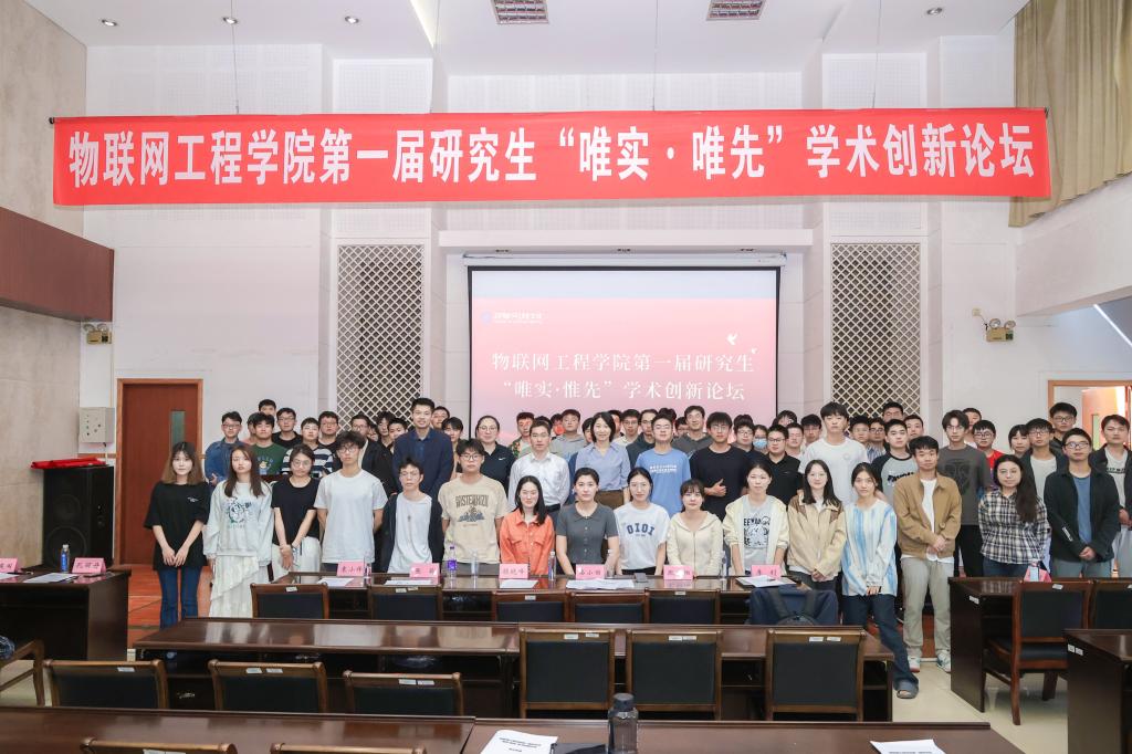 2023年11月3日,物联网工程学院第一届研究生“唯实·惟先”学术创新论坛成功举行。论坛旨在营造开拓创新、交叉融合的校园学术氛围,为广大研究生搭建多渠道的学术交流平台。校党委研究生工作部部长、研究生院院长吴小俊,物联网工程学院党委书记耿向阳、院长栾小丽、党委副书记孔丽丹、副院长梁峻阁等出席本次论坛。论坛吸引了学院300余位研究生广泛参与。