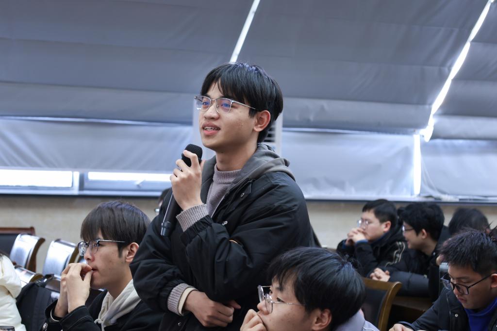 交流互动环节,同学们就品质磨练、专业学习、科研规划、就业选择等方面踊跃提问,堵校长结合自身的求学经历和工作阅历一一给予细致解答,同时,他希望广大学子要通过不断奋斗实现自我价值,心系“国家事”、肩扛“国家责”,努力服务人民、奉献社会。精辟深刻的见解、深入浅出的语言、生动详实的案例,赢得了同学们热烈的掌声。