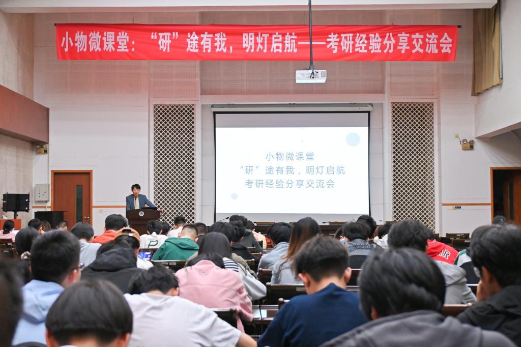 近日,小物微课堂:“研”途有我·明灯启航——考研经验分享交流会在物联网工程学院D328会议室举办。2020级毕业班优秀学子李世骏、王子木受邀为2021级本科生分享考研心得,200余名同学报名参与。活动由学风扎口辅导员谢幸福主持。