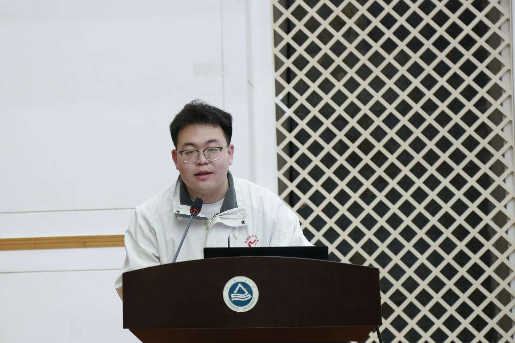 陈文卓作“两个计划”招募政策解读。围绕项目背景、服务内容、政策保障、报名流程和相关注意事项等方面进行深入浅出地讲解,让在场学生对“两个计划”相关政策有了更加清晰的认识,以“用一年不长的时间,做一件终身难忘的事”为口号,呼吁同学们以实际行动践行“请党放心、强国有我”的青春誓言,让青春在祖国和人民最需要的地方绽放绚丽之花。