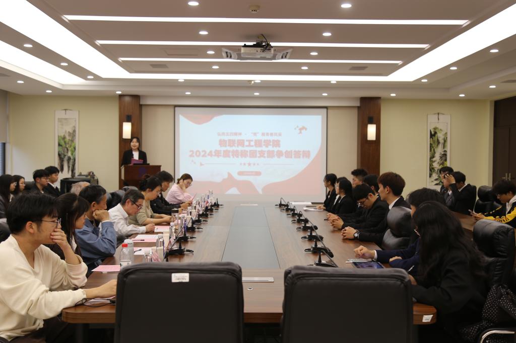 为进一步强化基层团组织活力,发挥先进团组织的示范引领作用,在五四青年节来临之际,物联网工程学院特称团支部争创答辩活动在学院B222会议室成功举行。学院分团委书记洪筱,关工委委员吴锡生、朱凯元、赵曾贻,2023级本科生辅导员李诗炜、谢幸福担任评审,各争创团支部代表70余人参加活动。活动在昂扬的团歌中开始。