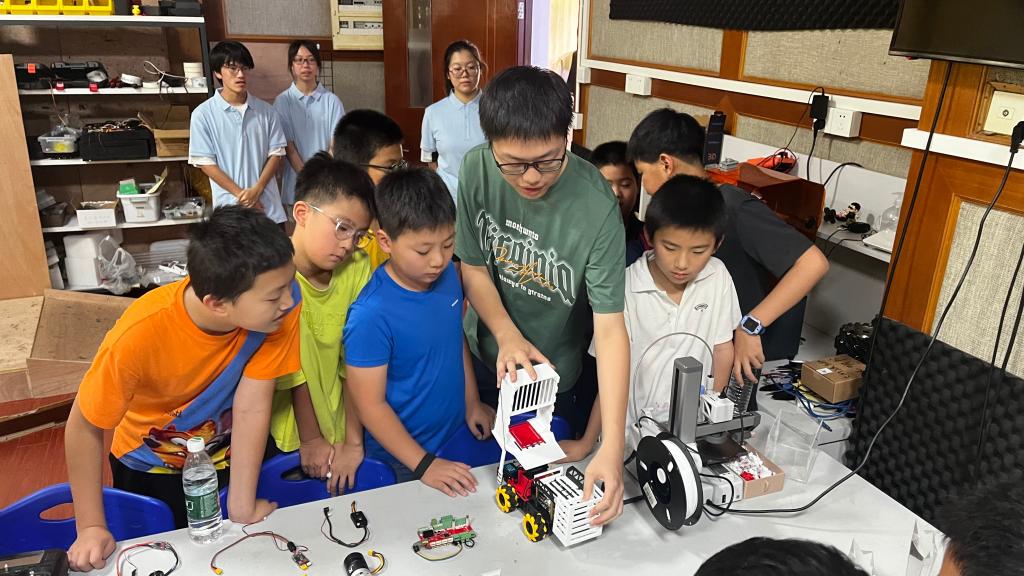 此次活动由“智骋江南”暑期实践团和江南大学I-link科普协会的成员们担任讲解员。在讲解员的热情引导下,“江小娃”分别走进RoBoMaster俱乐部、机器人俱乐部、智能车俱乐部和科普研学基地,各式各样的智能车、机器人精彩亮相,其自主运行、自动避障的奇妙行驶表演吸引了“江小娃”的目光。“小车为什么只会沿着白线行走?”“小车是怎么感知路线的?”“这些代码分别起到了怎样的作用?”江小娃们纷纷提出疑问。在志愿者耐心细致、深入浅出地讲解下,现场氛围热烈,江小娃们像海绵一样汲取科技知识,科创兴趣被大大激发。
