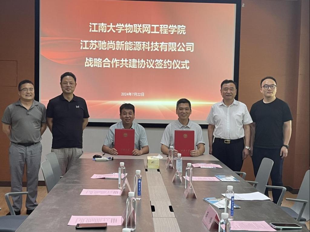 为全面落实党的二十届三中全会精神,进一步深化校企合作,7月22日下午,物联网工程学院与江苏驰尚新能源科技有限公司在学院D206签订战略合作共建协议。无锡市泰州商会党支部书记周庄其,江苏驰尚新能源科技有限公司董事长薛臻、市场总监于玲玲、实施技术总监陈阳,无锡市泰州商会轮值会长马静、副秘书长高军,物联网工程学院党委书记张华,物联网工程学院党委委员、教授卢先领,物联网工程学院办公室主任付少平出席签约仪式,仪式由张华主持。