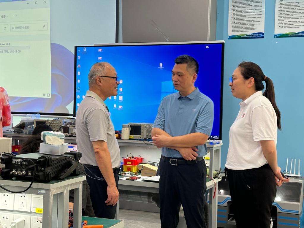 在大学生创新实践基地,张华一行走访了电子设计、机器人、智能车、电力电子等科创俱乐部,与竞赛指导老师、备赛学生深入交流,现场观摩了电子设计竞赛校内模拟赛。张华对暑期坚守在一线的指导老师表示感谢,对全力备赛的同学们给予高度评价,他表示学院将努力做好赛前指导、设施保障和后勤服务工作,希望同学们能够在有限的备赛时间里夯实理论知识,提高实践能力,提升综合素质,以扎实的专业素养在比赛中取得优异成绩。