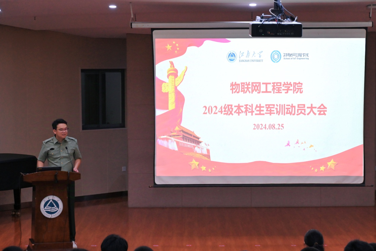 少年铸军魂,汗水注青春。8月25日上午,物联网工程学院2024级新生齐聚北区大学生活动中心音乐厅,隆重举行军训动员大会。学院党委副书记、副院长孔丽丹,2024级本科生辅导员李灿、沈滔,2024级全体参训学生出席活动。大会由沈滔主持。
