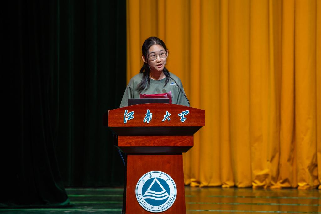 本科新生代表胡心怡发言