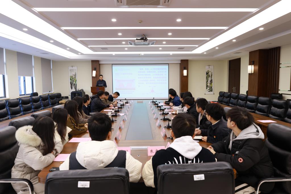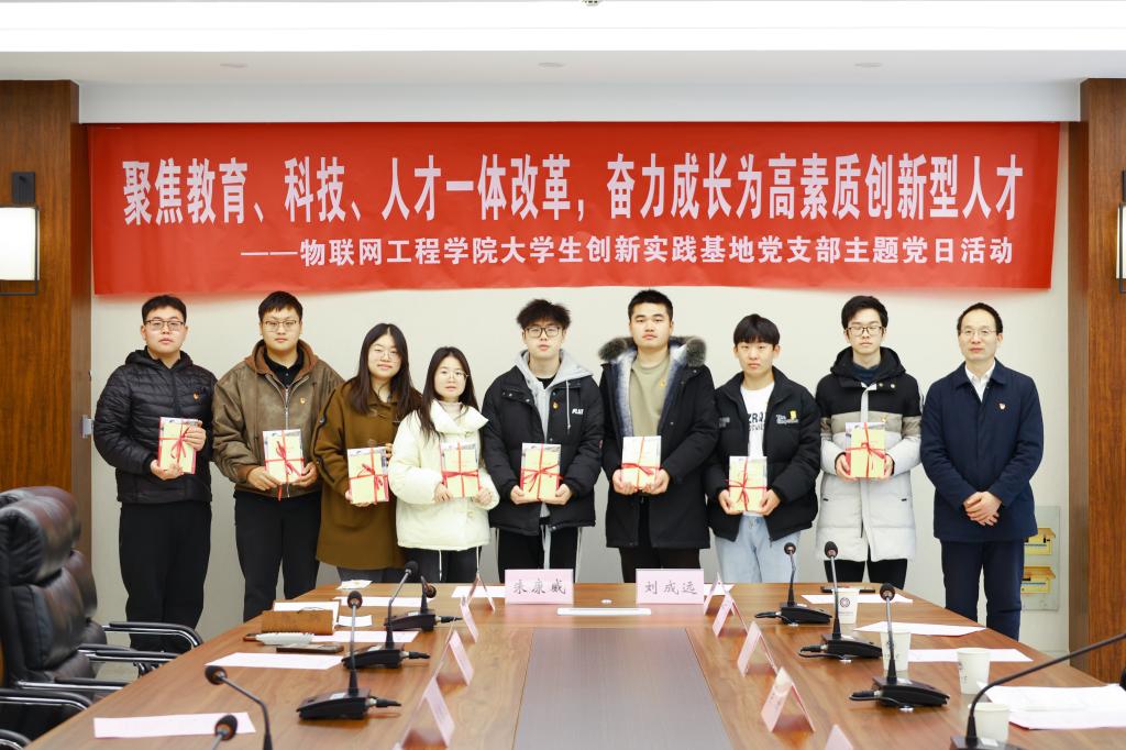 12月24日上午,物联网工程学院大学生创新实践基地党支部(以下简称“大创党支部”)在学院B222会议室开展“学习党的二十届三中全会精神:聚焦教育科技人才一体改革,奋力成长为高素质创新型人才”主题党日活动。江南大学党委常委、副校长堵国成,物联网工程学院党委书记张华,物联网工程学院党委副书记兼副院长吴妍及大创党支部全体师生党员参加活动。活动由支部纪检委员、专职辅导员屈跃宽主持。