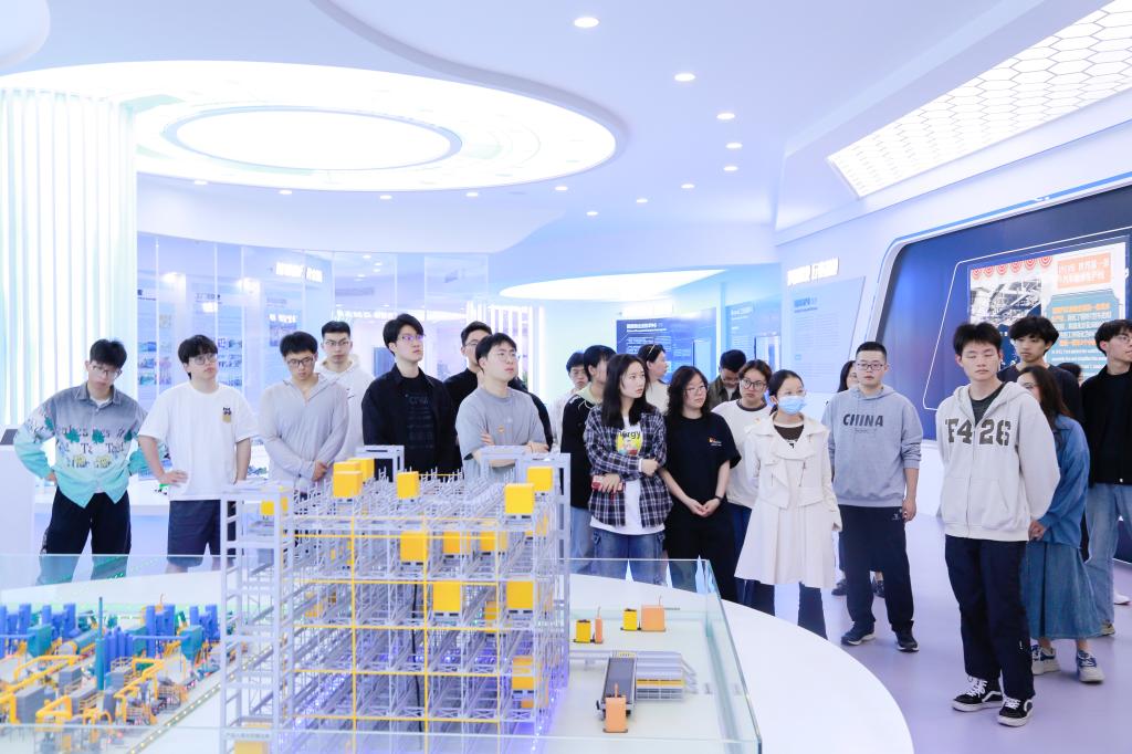 随后,在企业代表的带领下,师生步入公司展厅和产线参观通道,实地探访智能制造现场。产线展厅内,全自动装配线精准运行,工业机器人协同作业,完整展现了新能源汽车关键零部件的智能装配流程、动力电池回收环节的工艺路径。企业代表重点讲解了涵盖研发设计、生产制造到质量管控的全链条管理体系,通过理论知识与产业实践的深度融合,让同学们直观感受到智能制造的科技魅力。参观过程中,大家踊跃提问,与企业代表展开交流,既拓宽了专业视野,也进一步激发了对智能制造与循环经济的探索热情。