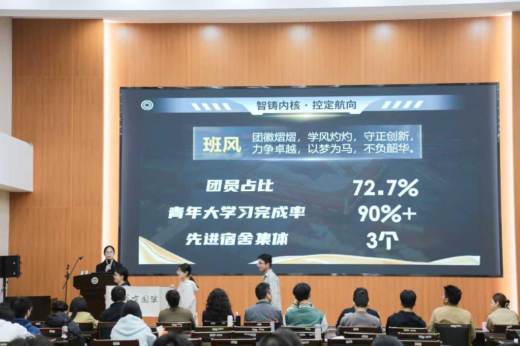 活动中,各参赛班级按照抽签顺序依次登台展示,以PPT汇报、才艺展示、舞台表演等多样化形式,全方位呈现班级建设的亮眼成果。各班用详实数据与鲜活案例,清晰展现班风建设的扎实举措与思想引领的显著成效:自动化2204班重点分享学风建设经验,详述班级在科研竞赛中的突破与多名学生保研至顶尖高校的成果,尽显专业硬实力;电气2302班则围绕“雷锋特称团支部”建设,介绍如何将志愿服务与专业学习深度融合,凸显独特班级特色;物联网2303班以合唱、诗歌朗诵等温情节目,生动传递出“生活中互帮互助、学习上协同奋进”的融洽氛围;自动化2206班则以创意舞台表演的形式,将团支部开展优秀社会实践的经历及班级成员并肩参与科创竞赛的场景搬上舞台,充分展现出物联学子昂扬向上的青春风采。各班不仅全面展现了在科创竞赛、社会实践等领域的优异成绩,更生动呈现出团结协作的良好班风,彰显了物联学子昂扬向上的青春姿态。