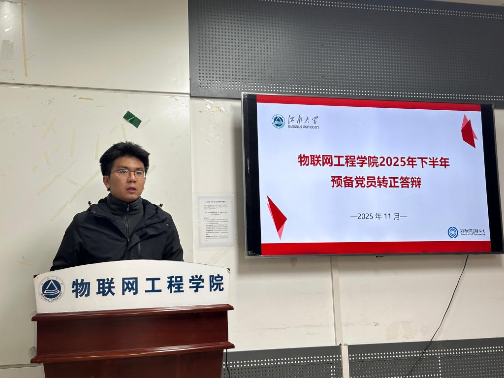 为严格遵循党员发展“三投票三公示一答辩”实施办法,提高学生党员发展质量,提升学院党建工作标准化规范化水平,近日,物联网工程学院于C121会议室举行2025年下半年预备党员转正答辩会。学院辅导员、相关党支部书记及支委担任评委,17名预备党员参加答辩,各支部党员代表观摩学习。