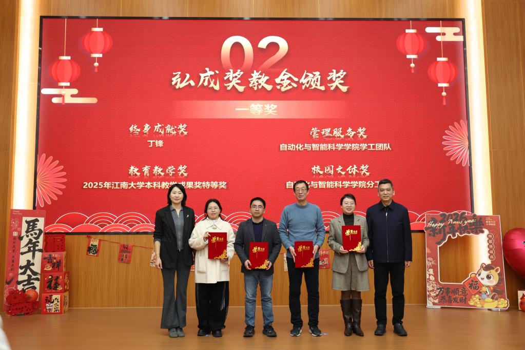 随后举行“自动化与智能科学学院(物联网学院)2025年度弘成奖教金”颁奖仪式,对在教育教学、科研创新、平台建设、管理服务与校园文体等方面表现突出的集体与个人予以表彰,学院领导班子成员为获奖代表颁发荣誉证书。这既是对先进典型的充分肯定,也激励全体教职工以榜样为标杆,继续凝心聚力、锐意进取。