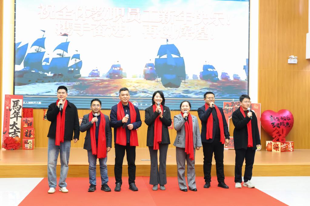 活动在对2025年工作成效的回顾与对新一年美好愿景的祝福中拉开帷幕。随即,学院领导班子、党委委员及院助带来节目《众人划桨开大船》,以昂扬向上的合唱点燃全场热情,传递出团结协作、奋楫笃行的精神风貌。
