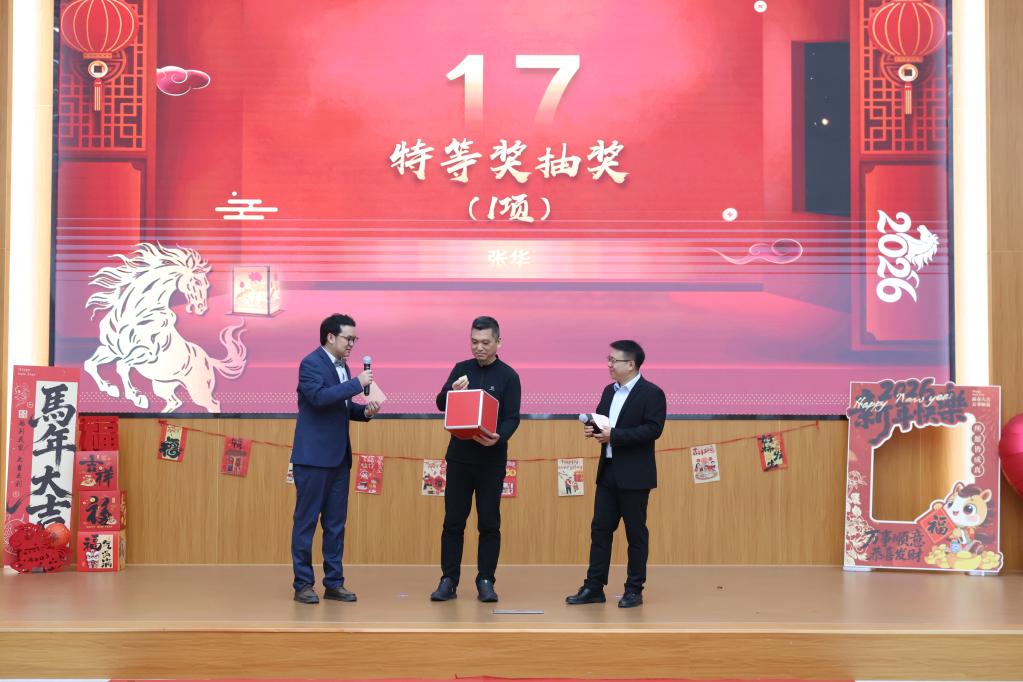 互动环节同样高潮迭起。活动设置“鸿运腾空”“套鹅纳福”“马到成功”“金鸡送福”四项趣味游戏,老师们踊跃参与、默契协作,在欢声笑语中释放活力、增进交流。抽奖环节穿插其间,三等奖、二等奖、一等奖及特等奖依次揭晓,为现场不断增添惊喜与温暖。