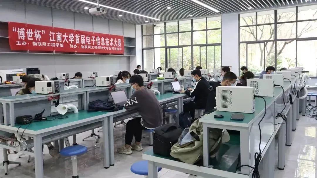 物联网工程学院高度重视本次大赛的组织工作,为迎接今年的省赛和国赛,自2022年下半年便开始着手准备,针对电子类赛道和和软件类Python赛道积极策划举办校内选拔赛和集训营。依托大学生科技协会和电子设计俱乐部平台,组成以冯伟、汤泽等为主要指导老师,以段勤硕、苏春宝、沈熙、邓净雨等为学生指导员的电子类指导团队,组织举办江南大学首届电子信息技术大赛;依托数据赋能俱乐部,组成以罗海驰、倪雨青等为主要指导老师的软件组(Python)指导团队,组织举办江南大学首届Python编程竞赛。两项竞赛共有来自全校的500余名同学报名参赛,指导团队分别在嵌入式设计与开发、单片机设计与开发、EDA设计与开发、Python程序设计等方面,针对硬件工程能力、语言编程能力、算法知识学习等开展多次集中培训,专门采购模拟竞赛平台,进行多次线上模拟备赛。通过组织校级竞赛,选拔出100余名种子参赛队员,每周开展两次集中拔高训练营,由指导团队分级分类开展一对一辅导,进一步提升了同学们的专业基础和参赛能力,营造了浓厚的学习和科创氛围。参训同学坚持集中学习、研究策略、总结经验,利用线上线下讨论平台的操作、程序的编译,一同研究历年省赛、国赛真题,进行模拟测试,在比赛中不骄不躁,沉着应战,展现出较高的专业素养和较强的心理素质。