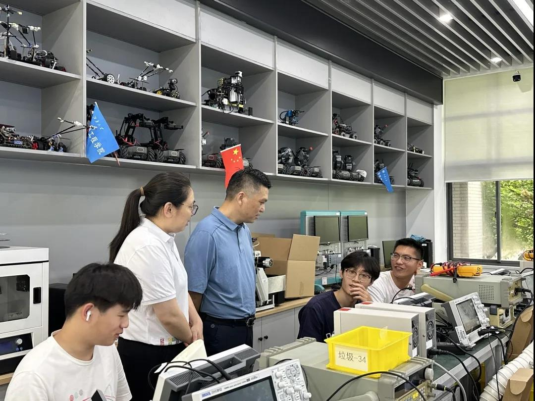 物联网工程学院高度重视本科生学科竞赛,依托大学生创新实践基地对该项赛事进行了精心组织和周密安排。3月份,举办江南大学“博世杯”电子设计竞赛,以赛代练,以赛促训,面向全校择优选拔种子队全力备战2024年江苏省电子设计竞赛及2025年全国大学生电子设计竞赛;5月份,依托电子设计俱乐部、智能车俱乐部、物联网创新应用俱乐部等,组建了以朱凯元、吴定会、冯伟、张伟、孙顺远、肖永松、毕恺韬、艾建等为代表的优秀指导教师团队,对种子队选手进行为期三个月的基础训练和专项培训;暑假期间,师生们攻坚克难,不畏高温酷暑选择留校备赛,学院在确保元器件和材料充足供应的同时,关心关爱留校学生,学院党委书记张华带队走访慰问,并定期发放物资和防暑降温用品,全力做好各项保障工作。