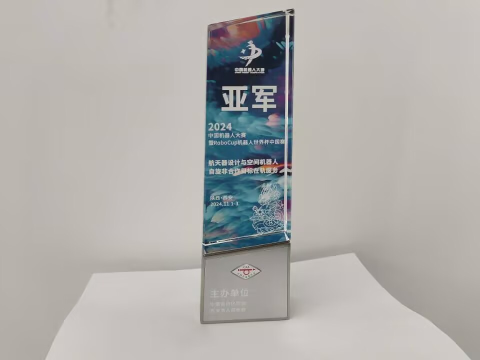 物联网工程学院依托大学生创新实践基地飞行器创新研发团队,由学院王蛟龙老师指导的海鸢(团队成员:邓子恒、梁樱琪、夏伊琳、单炜尧)和太湖之鸢(团队成员:周小荻、高欣、任凯阳)两支队伍参加了本次大赛航天器设计与空间机器人赛道的《自旋非合作目标在轨服务》赛项。本赛项以在轨服务为任务背景,以空间机器人对自旋非合作目标跟随绕飞任务为比赛主题,要求空间机器人需在比赛场地内完成对自旋目标卫星的接近、绕飞、对接等动作。主要引导参赛队研究、设计并制作具有优秀硬件与软件系统的空间机器人,逐步提高空间机器人包括目标运动预测能力、相对导航能力、路径规划与优化能力、自主捕获与对接能力、系统鲁棒性与容错能力等多方面的能力。两支参赛队,经历三个月的刻苦努力,自主研发出了两款空间机器人航天器,并在无人机结构设计组装、障碍规避、目标识别、软件算法等方面进行了大量创新优化。经过多轮激烈角逐,两支团队均脱颖而出,最终分别斩获大赛亚军和季军,同时获得全国一等奖,展现了江南大学物联网工程学院在机器人技术、控制工程、算法优化等领域的深厚底蕴与创新实力。