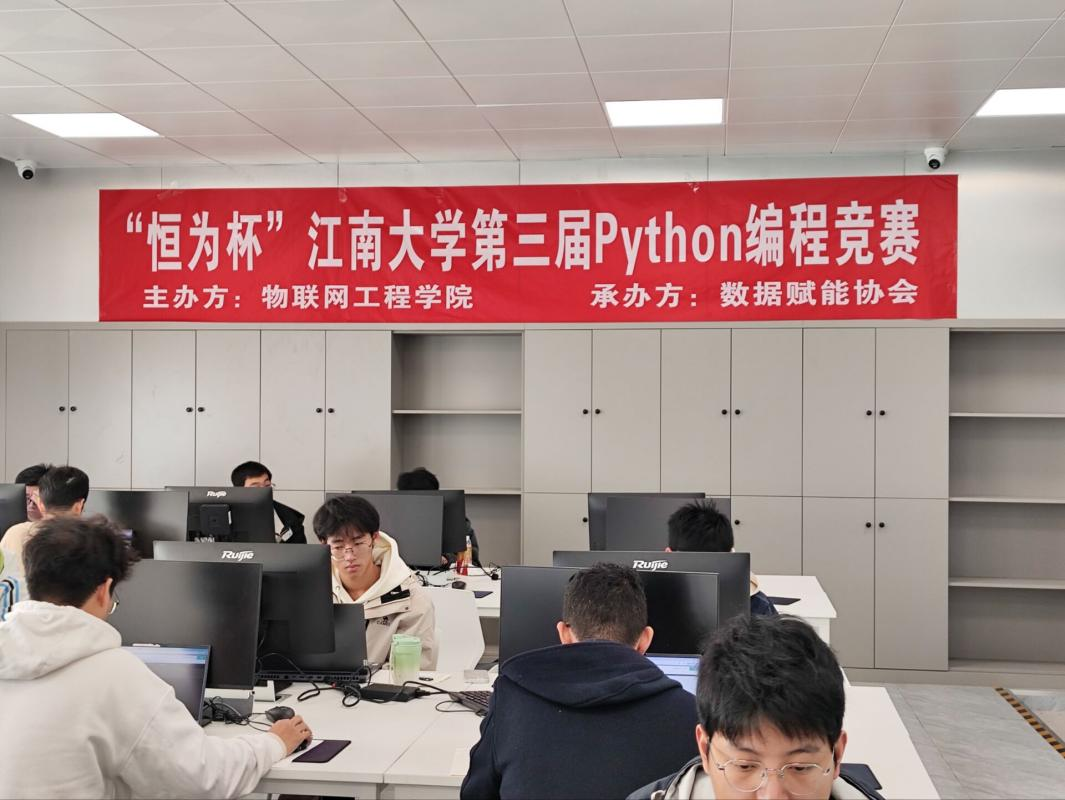 11月23日,由物联网工程学院主办、物联网大创基地数据赋能俱乐部承办的“恒为杯”江南大学第三届Python编程竞赛成功举办。本次比赛旨在激发学生对Python编程的学习兴趣,培养科创实践能力,为2025年蓝桥杯大赛选拔优秀选手。共吸引了来自物联网工程学院、人工智能与计算机学院、机械工程学院等近百名同学同台竞技,各展所长。