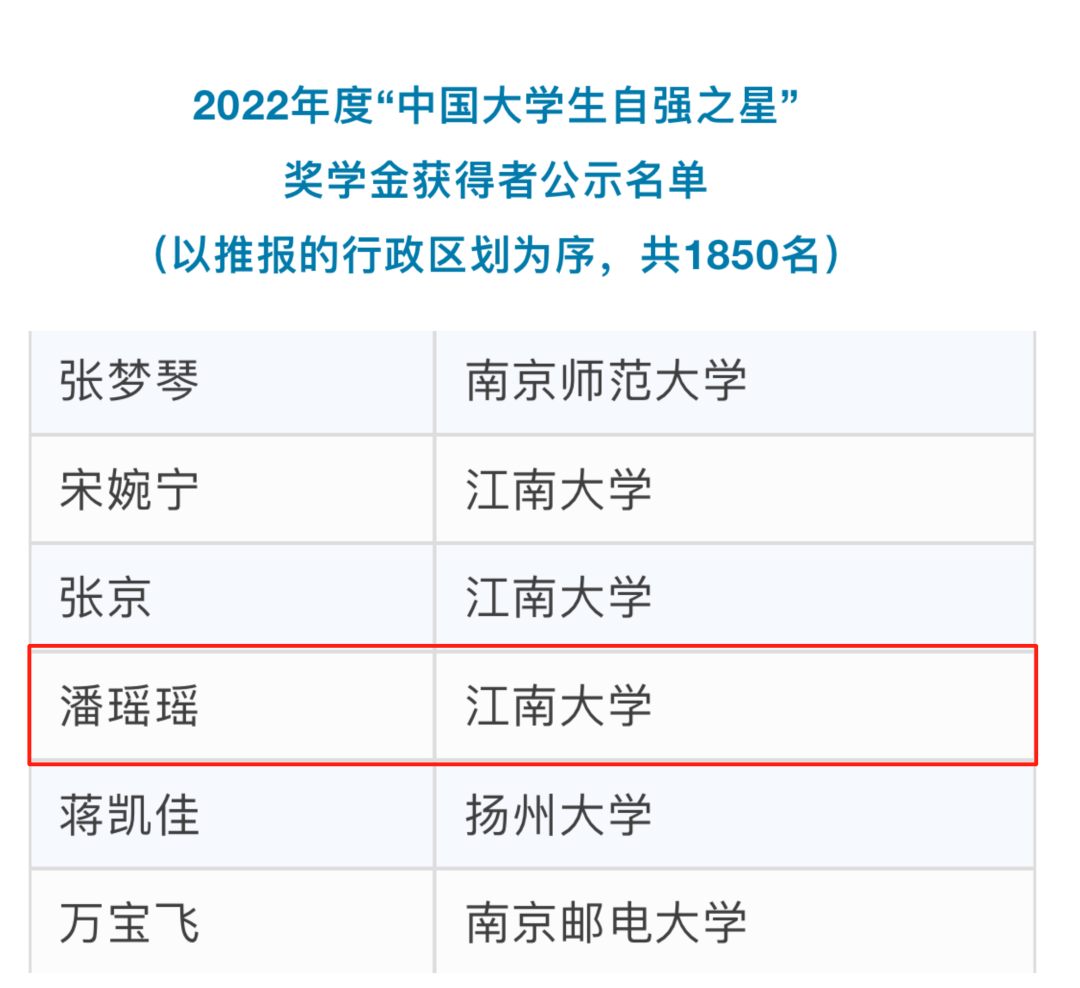 近日,由共青团中央、全国学联指导,中国青年报社、新东方教育科技集团、中国青年创业就业基金会联合举办的2022年度“中国大学生自强之星”奖学金推报活动结果揭晓。经各高校推荐、省级初评、全国评审等环节,物联网工程学院潘瑶瑶同学荣获2022年度“中国大学生自强之星”。