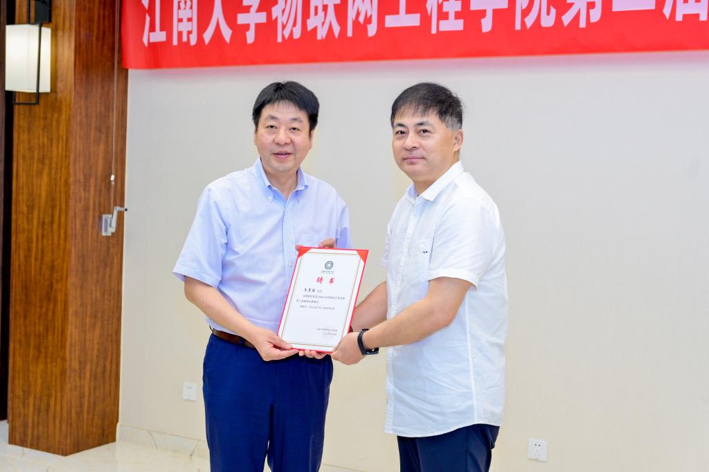 接着,会议审议通过了《江南大学物联网工程学院第二届董事会章程》和《江南大学物联网工程学院第二届董事会成员建议名单》。朱康建当选物联网工程学院第二届董事会董事长,潘志昕等九人当选副董事长,胡德勇等九人当选常务董事和董事。倪松涛向第二届董事会董事长朱康建颁发聘书,周云龙、栾小丽分别向第二届董事会副董事长、常务董事和董事颁发聘书。会上,还进行了捐赠证书的颁发。