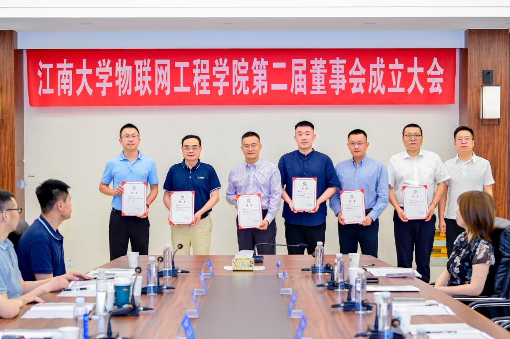 2023年6月30日,江南大学物联网工程学院第二届董事会成立大会在学院B222会议室隆重召开。江南大学党委常委、副校长倪松涛,社会合作与校友联络处处长周云龙,博创智能装备股份有限公司董事长朱康建等十九家企业代表,以及物联网工程学院党政班子成员出席会议。大会由物联网工程学院党委书记耿向阳主持。