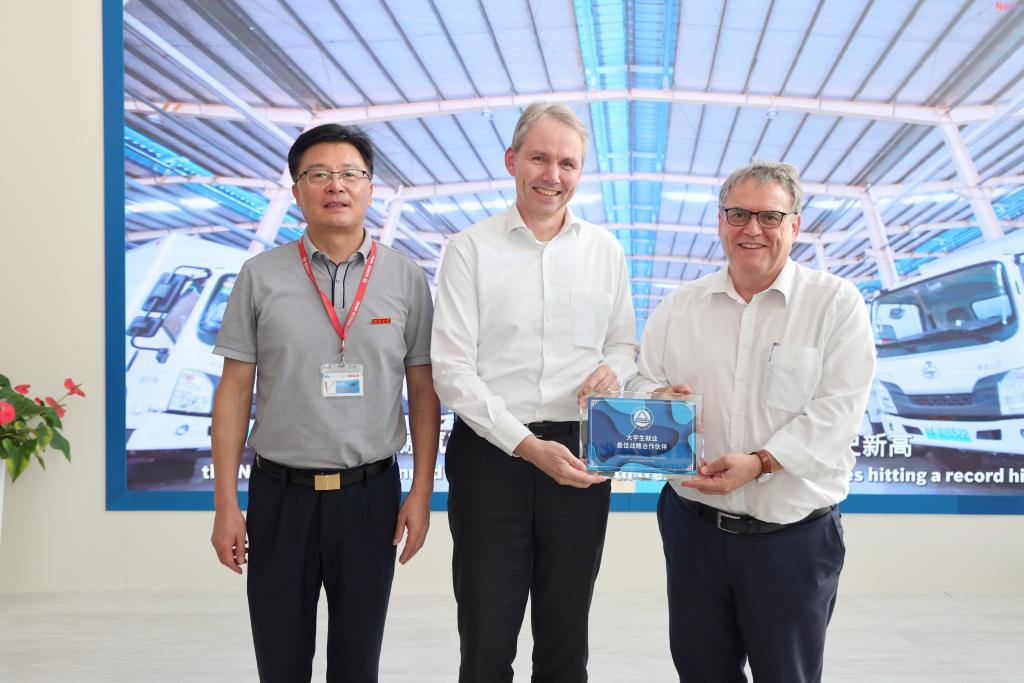 座谈会上,温博韬对符惠明一行的到访表示热烈欢迎,并介绍了博世集团的发展理念、集团详情以及集团的业务开展领域等情况。他指出,博世集团秉承“根植本土、服务本土”的理念,深度融入了中国经济的发展,为中国市场和用户提供汽车与智能交通、工业、消费品以及能源与建筑技术领域的先进技术和解决方案。闻立衡从产品性能及技术、工业4.0支持卓越生产、燃料电池工业化生产线三个方面详细介绍了博世动力总成的技术发展情况。