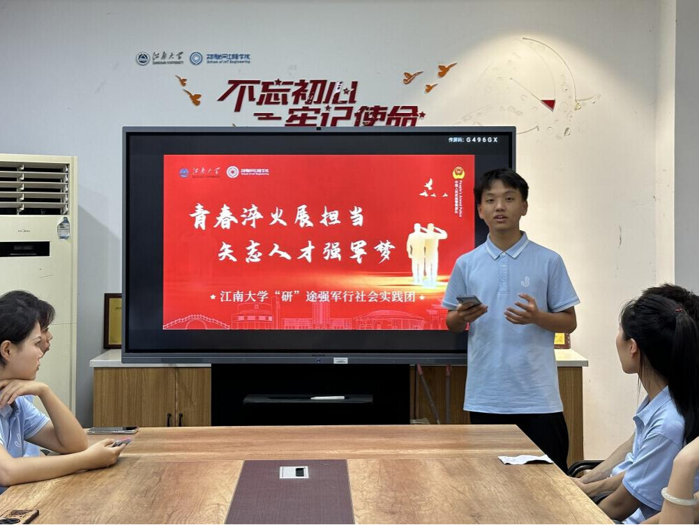 【中青校园8月14日】7月27日,江南大学物联网工程学院“研”途强军行暑期社会实践团赴驻锡部队开展“青春勇担当,‘研’途筑国防”主题实践活动。该团队由15位硕博生组成,通过学习严明纪律、锻造强健体魄、提升科技素养等一系列特色活动与官兵携手进行思想交流与情感互动,展现出新时代青年的责任担当与家国情怀,为科技强军战略注入青春活力。