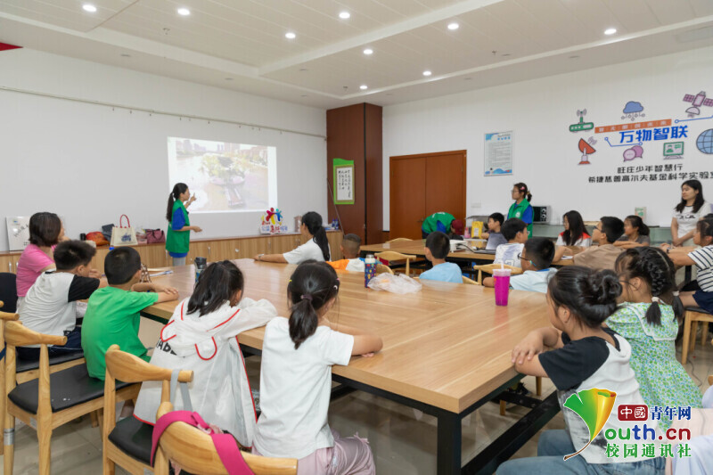 图为实践团成员孙涵在“小河长”课堂上讲解环保知识。樊铭举 供图